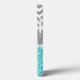 GIRLY MODERN PRINTED AQUA BLUE GLITTER (PRINTED PHOTO EFFECT) WITH GRAY AND WHITE CHEVRON PATTERN, MONOGRAMMED WITH YOUR NAME, YOUR INITIAL OR MONOGRAM ON A GRAY STRIPE OR BAND WITH A BORDER OF PRINTED WHITE DIAMONDS. TRENDY, CHIC, COOL, CUTE DESIGN FOR HER, THE TRENDSETTER, THE FASHIONISTA. Design by Elke Clarke© for Monogram Gallery