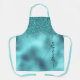 Aqua Glitter Metallic Handwritten Monogram Name Apron