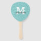 Aqua Glitter Monogram Hand Fan