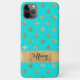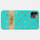 This stylish aqua blue and gold Case-Mate Barely There iPhone 11 Case has a fleur-de-lis pattern in gold that is sure to be a standout! The case has a wide gold band across the bottom that is personalised with a name or other text.
