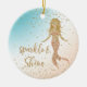Aqua Gold Mermaid Sparkle Glitter Confetti Ceramic Tree Decoration