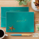 Whimsical modern sea ocean beach wedding invitation envelope in blue teal with starfish and faux gold sand typography script. Perfect choice for a modern beach, seaside, oceanfront, coastal, tropical, nautical, cruise or island destination-themed wedding.