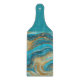 Ai created an abstract of paint pouring colours of aqua, emerald green, and gold sparkles cutting board.