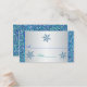 This festive wintery aqua blue, green, and silver grey Quinceañera place card with FAUX PRINTED glitter snow flakes on it matches the Quinceañera party invitation shown below. Email niteowlstudio@gmail.com with any requests.