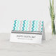 Business from all of us birthday card with stylish and modern bright turquoise blue, charcoal gray and white zigzag chevron stripes pattern. Perfect for employees. Customizable, also available in other cards.