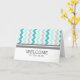 Welcome your new employees to your team and make them feel appreciated with this cheerful and stylish retro bright turquoise blue, charcoal grey and white modern zigzags chevron stripes pattern business employee welcome greeting card, gender neutral, a wonderful morale builder.