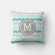Elegant and modern bright teal turquoise blue, grey and white chevron zigzags stripes pattern custom monogram decorative throw pillow. Fully customisable, add your own initial for a truly unique home decor item.