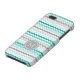Chic and modern iPhone 5c custom monogram case in elegant turquoise teal blue, grey, and white retro chevron zigzags stripes pattern.