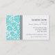 Mummy calling cards in classic and chic floral damask pattern in modern white, dark charcoal grey, and bright turquoise sky blue. Customisable with your contact details, stylish and contemporary, the perfect way to set up play dates or keep contact with playgroup moms. Contact us for a custom colour.