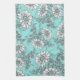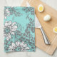 Modern and elegant turquoise teal blue, grey and white classic vintage flowers pattern kitchen towel, customisable with your own text or photo, a unique and elegant addition to your kitchen decor.
