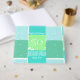 Lovely and simple design with trendy colours for spring and summer (aqua, mint, turquoise and light green). These coloured tiles are made with alternating straight lines and irregular lines as faux batik. Customisable 50th Birthday party Guest Book with white and aqua colours lettering. Available in spiral notebook. Matching birthday paper napkin and paper plate.