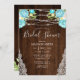 Aqua Mint Rustic String Light Floral Bridal Shower Invitation