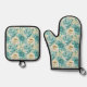 Aqua Mint White Floral Wedding Oven Mitt & Pot Holder Set