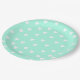 Aqua Mint with Cute White Hearts Pattern Paper Plate