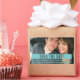 Simple yet trendy Modern Cut Out Save the Date Stickers in turquoise featuring a sharp typography design with cut-out text. These elegant save the date stickers are easy to customise with a cute photo and the details of your wedding. Click "Customise It" to find more personalisation options.