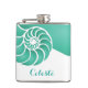 Aqua Nautilus Shell with Custom Monogram Hip Flask