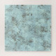 A soft dusty aqua base is layered with a myriad of graphic elements in charcoal grey, creating depth and visual interest.