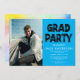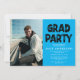 This design features an artsy brush font in a shade of aqua turquoise. Personalize the front of the invite by adding the graduate's name, school name, graduation year and graduation party details. The back of the invite has an abstract artsy background that mimic waves, to coordinate with the color on the front.