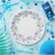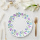 Aqua, Periwinkle, Purple Watercolor Floral Wreath Paper Plate