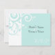 RSVP card to match our Elegant aqua and white wedding invitation, with delicate swirl scroll leaf background. Customise online with your wedding details.