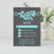 Sweet and pretty Rose Chalkboard Wedding RSVP Card in turquoise featuring a single lovely rose on a vine on a chalkboard look background. This elegant design is perfect for a spring or summer wedding. Easy to customise, simply add your wedding details in the text fields provided. Click "Customise It" to find more personalisation options.