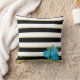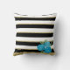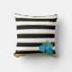 Aqua Roses on Black, White, Gold Stripes Cushion