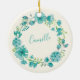 Aqua Sea Green Floral Wreath Personalised Ornament