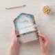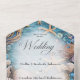 AVAILABLE WITH OR WITHOUT A QR CODE OR DINNER SELECTION OPTIONS. This design features a beautiful background of aqua, sand, blush pink, cream, and brown sea life. The text is displayed on a soft white transparent text area. The back continues the seashell background. Created by Simply Farmhouse Press.
