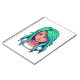 A vibrant pixel art portrait featuring a young character with long, flowing aqua-green hair, soft teal eyes, and a serene expression. The design incorporates soft, earthy tones for the skin, contrasting beautifully with the bright, dynamic hair. The subject wears a simple white top that accentuates their natural and tranquil vibe. The design style conveys an ethereal, otherworldly charm, making it suitable for fantasy or gaming settings.