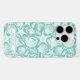 Customise this aqua shell pattern iPhone 16 pro case with your your name in a trendy modern CAP font in aqua on white. It's so modern and beachy!