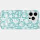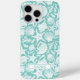 Customize this aqua shell pattern iPhone 15 pro max case with your your name in a trendy modern CAP font in aqua on white. It's so modern and beachy!