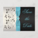 Aqua, Silver, and Black Floral Save the Date Announcement Postcard