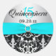 Aqua, Silver, Black Damask Quinceanera Sticker