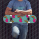 Aqua Skateboard Deck With Pink Hearts and Rainbows