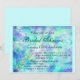 Fresh Spring colours dominate these custom Bridal Shower invitations with a whimsical abstract garden scene in aqua blue, green, purple and pink with leaves and butterflies. Fill in your information in the Personalise it section above. © Little Wing Photography & Design