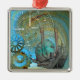 Fantasy digital graphic features a snail shaped Steampunk time travel machine with abstract aqua background