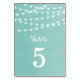 Aqua String Lights Wedding Table Numbers
