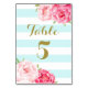 Aqua Stripes Pink Floral Wedding Table Number Card