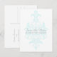 Modern with chic elegance describes this sophisticated Subtle Damask Save the Date Postcard with a light turquoise damask flourish background. This classic save the date is perfect for announcing a traditional wedding and can be easily customised with your wedding details. For more customisation options, click on the Customise It button.