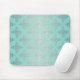 Aqua Teal and Silvery White Damask Pattern Mouse Mat