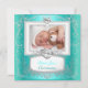 Aqua Teal Baby Girl Boy Christening Baptism Cross Announcement