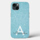 Aqua Teal Blue Faux Glitter and Sparkle Elegant Monogram Case. This case can be customized to include your initial and first name.