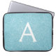 Aqua Teal Blue Glitter and Sparkle Monogram Laptop Sleeve