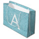 Aqua Teal Blue Glitter & Sparkle Monogram Large Gift Bag