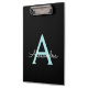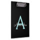 Black and Aqua Teal Blue Monogram Name Planning Clipboard. This makes the perfect sweet 16 birthday, wedding, bridal shower, anniversary, baby shower or bachelorette party gift for someone that loves glam luxury and chic styles.