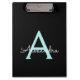 Aqua Teal Blue Script Girly Monogram Name Clipboard