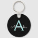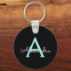 Black and Aqua Teal Blue Simple Script Monogram Name Keychains (Key Chain). This makes the perfect sweet 16 birthday, wedding, bridal shower, anniversary, baby shower or bachelorette party gift for someone that loves glam luxury and chic styles.