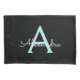 Black and Aqua Teal Blue Simple Script Monogram Name Pillow Case. This makes the perfect sweet 16 birthday, wedding, bridal shower, anniversary, baby shower or bachelorette party gift for someone that loves glam luxury and chic styles.