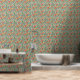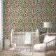 Aqua Teal Green Orange Art Nouveau Wallpaper