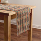 Aqua Teal Green Orange Taupe Beige Tribal Art Short Table Runner